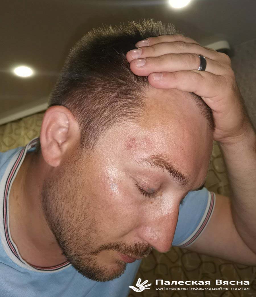 «Я падумаў – сапраўдных сабак, зараз разарвуць. Але прыйшлі людзі. Мяркуючы па тупаце і галасах – шмат людзей. І пачалі вельмі моцна мяне біць. Нехта, відаць лупіў дручкамі, нехта проста нагамі. Потым я адчуў, што па мне прайшліся абцасамі. Я думаю, што гэта тая жанчына, бо абцасы адчуваліся танчэйшыя, але даўжэйшыя за абцасы берцаў. Яна ж, відаць, патрапіла мне наском абутку ў скроню, бо насок быў востры, не як у берца. Я некалькі разоў губляў прытомнасць. Ачухваўся, калі мяне аблівалі вадой. З носу проста ручаём ужо бегла кроў, твар ляжаў у крыві. Тая жанчына казала: “Ты пашкадуеш, што сюды прыехаў!”. Потым зноў шмат удараў адразу ад некалькіх чалавек. Я моцна закрычаў і зноў адрубіўся. Потым паступова вярнуўся ў прытомнасць. Адчуў, што мне ў спіну і ніжэй штырхаюць нечым, мабыць, дручком. Было вельмі балюча, магчыма ад болю я і прыйшоў у прытомнасць. Потым яны ўзялі маю галаву і трусілі яе. Я адкрыў вочы. Зноў пачуў жаночы голас: “Хопіць, сыходзьце!”. Потым нейкі мужчына ў цывільным мяне падняў. Сурвэткай працёрлі твар ад крыві. З мяне бегла вада і яны ёю размазвалі кроў», – распавядае Уладзімір.