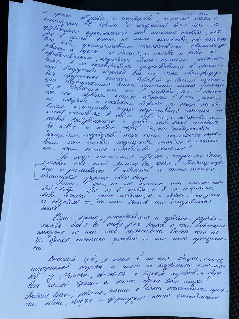 Палескай вясны аказаўся тэкст апошняга слова, якое палітзняволены, былы сябра