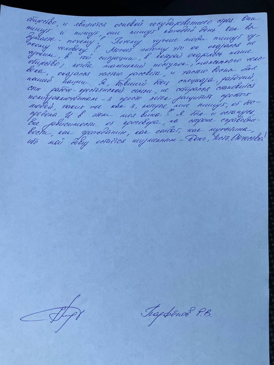 Почырк у Руслана Парфёнава даволі разборлівы, таму мы палічылі магчымым пакінуць проста фотаздымкі аркушоў, напісаных Русланам: