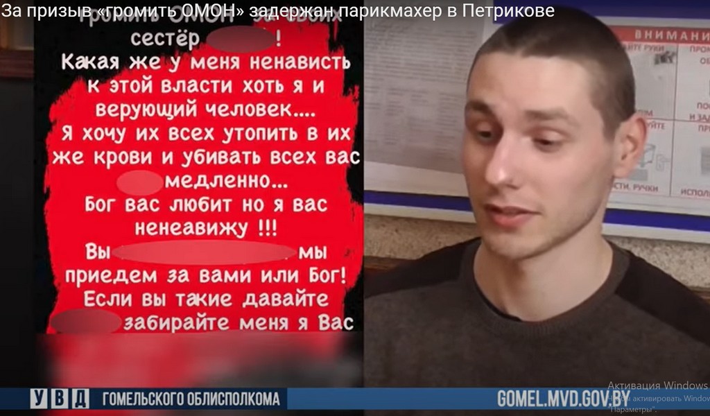 Прэсавая служба МУС паведаміла пра тое, што ў Петрыкаве затрымалі маладзёна, які выказаў словы нянавісці да дзейнай улады і заклікаў помсціць АМАПу за збітых сёстраў. Палеская Вясна даведалася хто такі затрыманы.