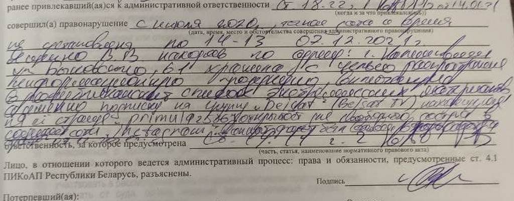 правапарушэнні выканаў участковы інспектар капітан міліцыі Ілля Фралоў. Ён сцвярджаў у пратаколе, што настаўніца дзіцячага