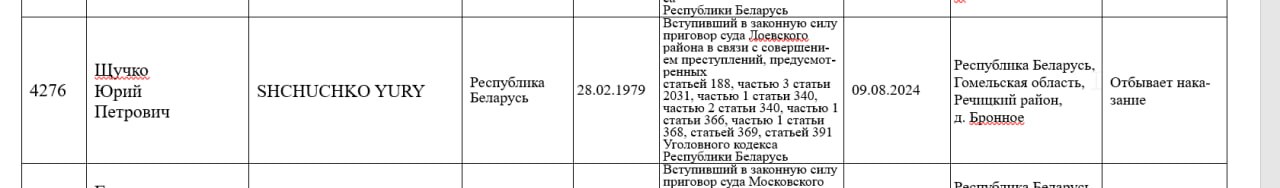 Тым не менш, знаходжанне Юрыя Шчучко ў эміграцыі складальнікі спісу “экстрэмістаў”, відавочна, палічылі адбываннем пакарання. Прынамсі, у тым спісе ў радку, прысвечаным Шчучко, у адпаведнай графе стаіць пазнака “отбывает наказание“. Ці праз пяць гадоў пасля набыцця так званым прысудам сілы, пакаранне, вынесенае Шчучко, будзе лічыцца адбытым, у спісе не згадваецца.