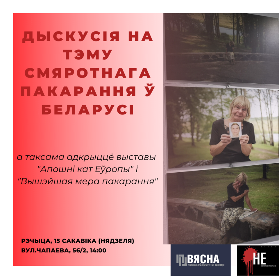 15 сакавіка – у Дзень Канстытуцыі, на базе грамадскага цэнтра ПЦ «Вясна» ў Рэчыцы адбудзецца дыскусія, прысвечаная тэме смяротнага пакарання.