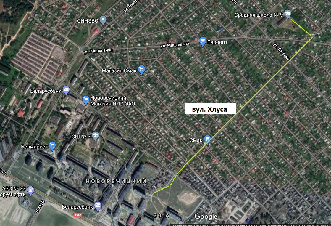 З’явілася адна разметка пешаходнага пераходу, які пракладзены па штучнай няроўнасці але, чамусьці па самой вуліцы Хлуса, але не па вуліцах, якія з ёй скрыжоўваюцца, і з якіх можа быць небяспека выезду аўтамабіляў на вялікай хуткасці.