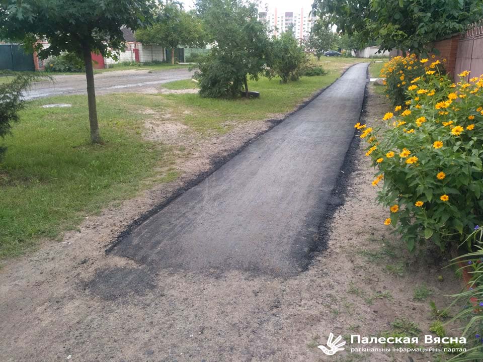 Замест чаканых на канец чэрвеня зручных ходнікаў і «зебраў» на вуліцы назіраецца нейкае залапліванне дзірак – сям-там ад вуліцы Будаўнікоў мазанулі трохі асфальту. У адным месцы нават добра не ўшчыльнілі – даўгавечнасць такога асфальтавання выклікае вялікія сумневы.