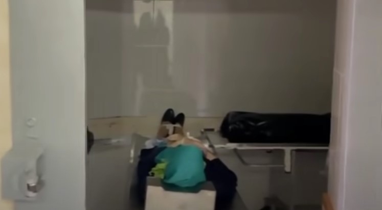Халадзільная камера Мазырскага моргу ў сакавіку 2022 года. Скрыншот з відэа Беларусь-1.