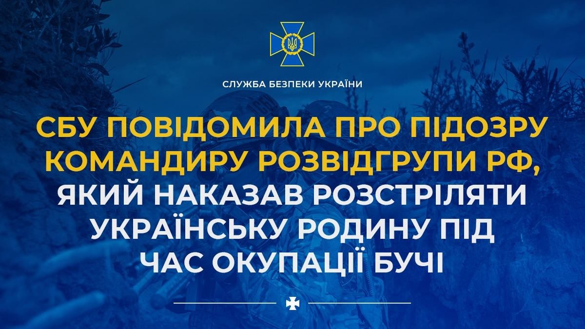 Пазней, па выніках расследавання фактаў ваенных злачынстваў расіійскіх акупантаў на акупаванай цягам сакавіка 2022 года частцы Кіеўскай вобласці, Служба бяспекі Украіны выставіла падазрэнне ў расстрэле ў Бучанскім раёне сям’і, у выніку якога загінулі мужчына, ягоная жонка і іхняя 15-гадовая дачка. У загадзе страляць па цывільных аўтамабілях СБУ падазрае камандзіра выведнай групы расійскіх войскаў Вадзіма Аўчыннікава. Ягоны злачынны загад непасрэдна выконвалі пяцёра ягоных падначаленых з прозвішчамі Жаркі, Гарматараў, Зварычэўскі, Белікаў, Нагуманаў.