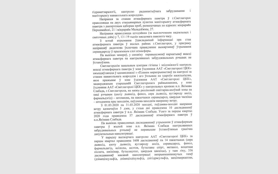 розную хімію ў паветры роднага горада, чыноўніца таксама не паведаміла. Наконт