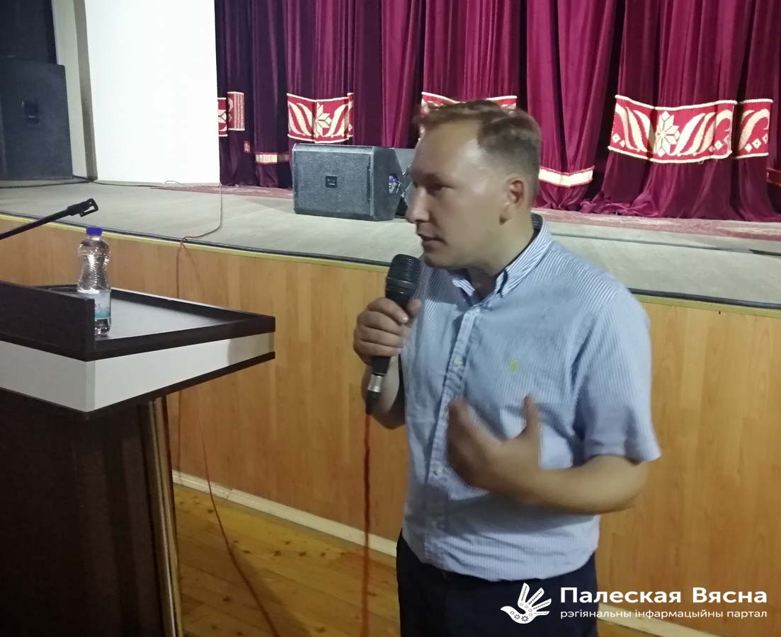 Кандыдат адказаў на пытанні з залы. І першым стала пытанне