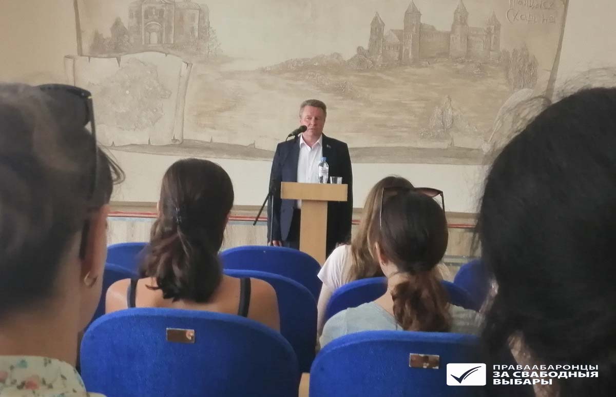 крэслах сядялі таксама групамі розных педагагічных калектываў. На сайце райвыканкаму гэтая сустрэча не анансавалася, у адрозненне ад сустрэчы ў пералічанай у адпаведным рашэнні выканкама актавай зале Палескага аграрнага каледжу, якая праходзіла праз тры з паловай гадзіны.