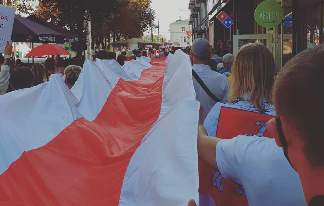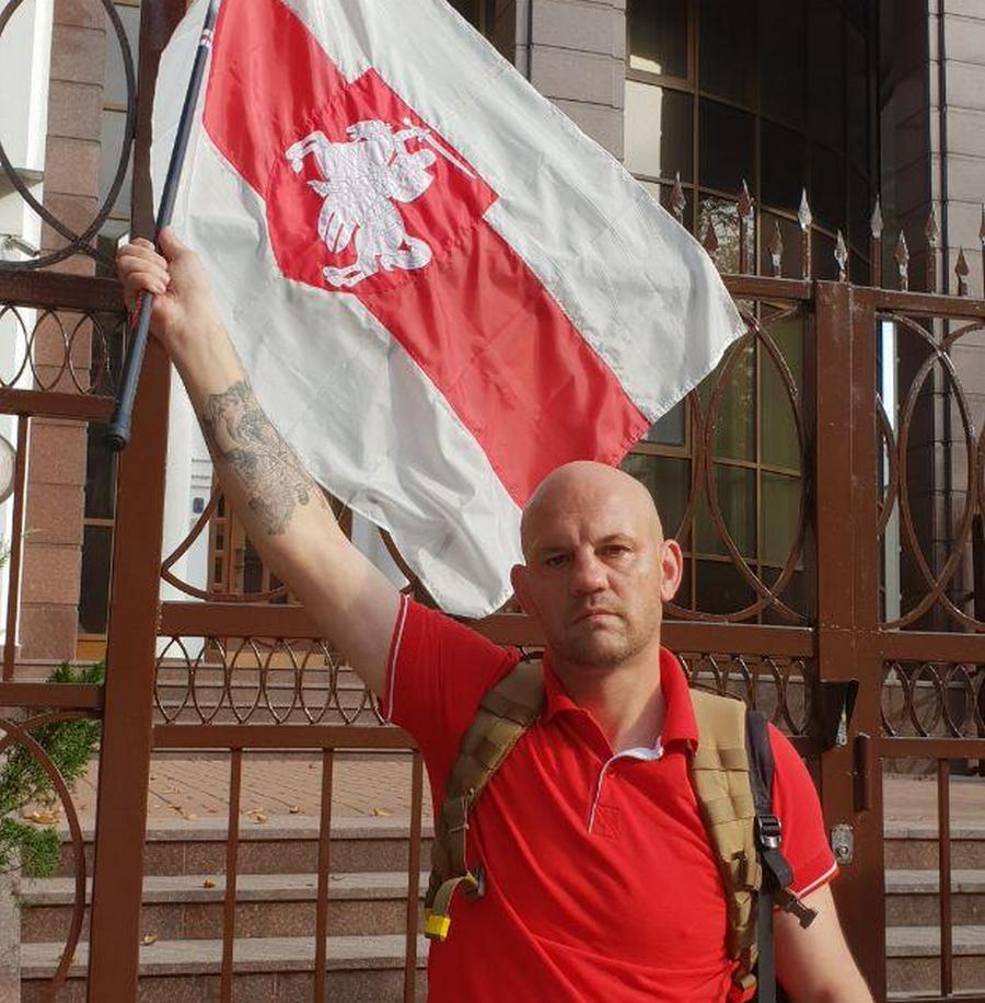 Сцяг, які вывесіў Юрый Шчучко.