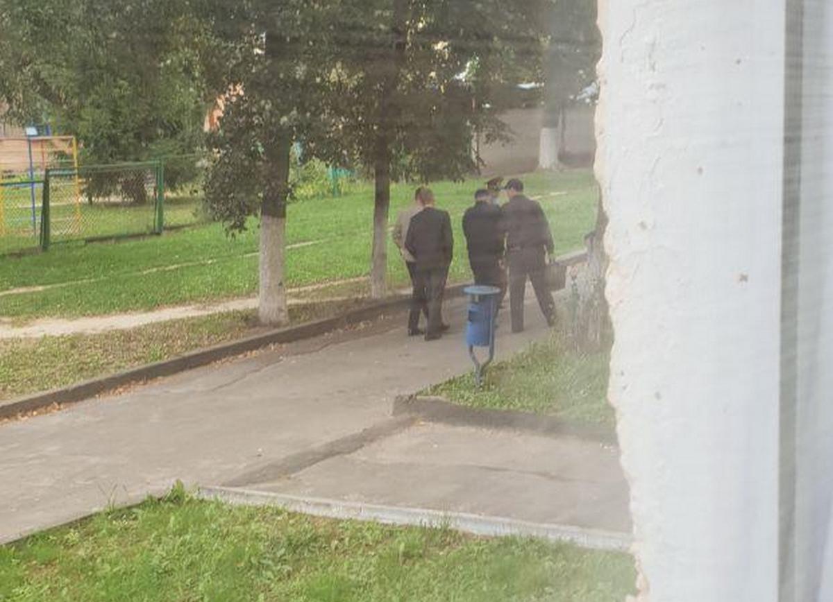 Міліцыянты сыходзяць ад пад'езду, дзе жыве Шчучко.