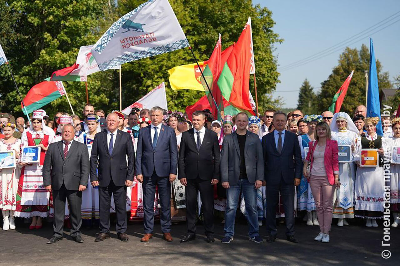 Лукашысты на адкрыцці памятнага знака ў вёсцы Ленін. Фота: Гомельская праўда