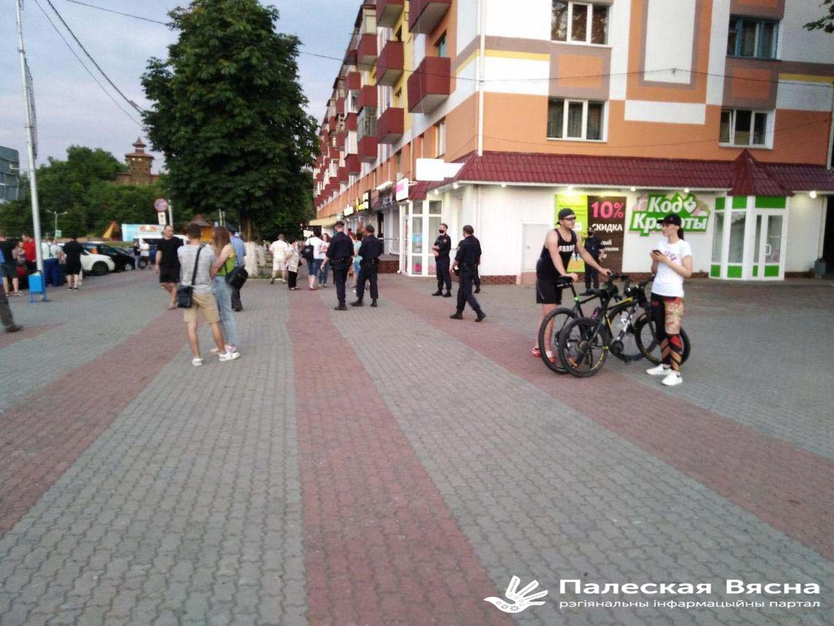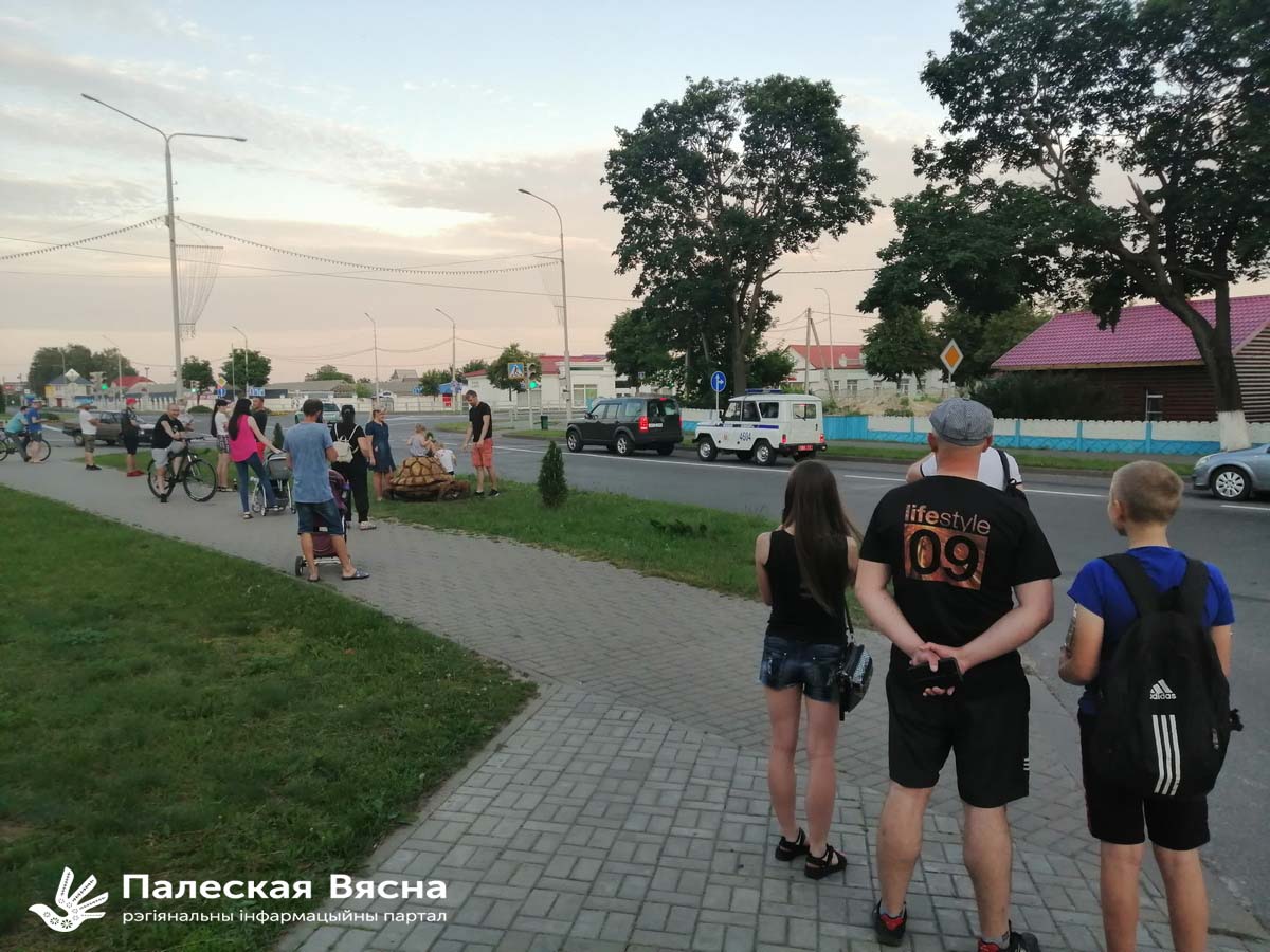 Бліжэй да 21 гадзіны ў двары дамоў каля плошчы пад’ехалі міліцэйскія аўтамабілі, з якіх да ланцуга падыйшло каля двух дзясяткаў міліцыянтаў. Яны расцягнуліся паўз увесь ланцуг салідарнасці, утварыўшы свой ланцуг, і пачалі казаць людзям, каб тыя разыходзіліся, бо гэта недазволенае райвыканкамам масавае мерапрыемства. Пакрысе людзі разыйшліся а міліцэйскі ланцуг яшчэ некаторы час заставаўся стаяць на плошчы.