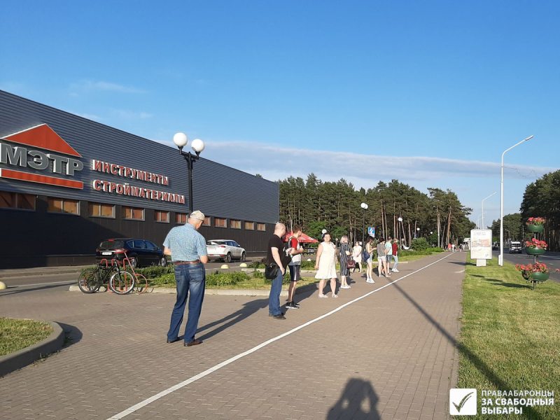 Як паведамляе праваабронца і назіральнік Уладзімір Целяпун, у Мазыры для таго, каб зменшыць рызыку разгону і затрыманняў людзі пачалі чаргу ад банкамату. Чарга расцягнулася больш як на сотню метраў, у ёй было каля 70 чалавек. Аўтамабілі, якія праязджалі па плошчы, сігналілі, а людзі ў ланцугу салідарнасці адказвалі на сігналы воплескамі.