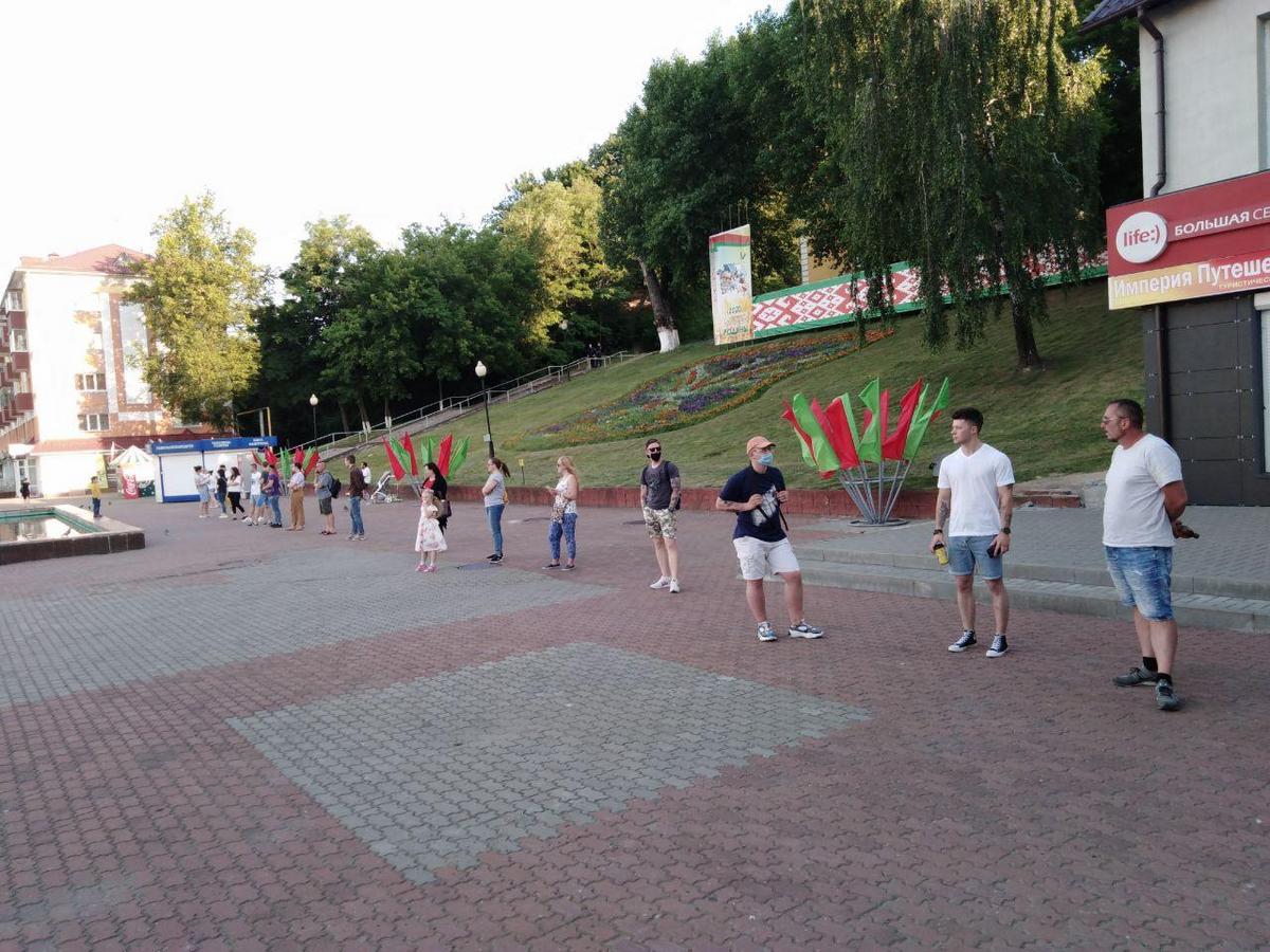 У Светлагорску мірнае стаянне людзей у ланцугу паспрабавалі разнастаіць супрацоўнікі мясцовага РАУС на чале з начальнікам Аляксандрам Зязёткам. Яны прыбылі на ланцуг, што расцягнуўся ад гандлёвага цэнтру «Березки» на сотню метраў, і пачалі ў гукаўзмацняльнік казаць, што мерапрыемства недазволенае, людзі мусяць разыйсціся, інакш іх прыцягнуць да адказнасці паводле артыкула 23.34. Адна жанчына ў цывільным адзенні здымала гараджан на відэакамеру. Людзі ў адказ здымалі на тэлефоны міліцыянтаў і крычалі «Ганьба!». Правабаронцы і назіральніцы Алене Маслюковай, якая зрабіла заўвагу міліцыянтам, што спрабавалі прычапіцца да пікетоўцаў, асабіста начальнік Светлагорскага РАУС пагражаў затрыманнем.